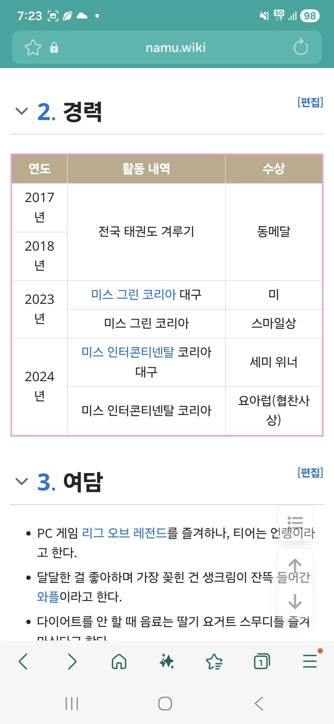 태권도 선출 & 미스 대구 출신 인플루언서