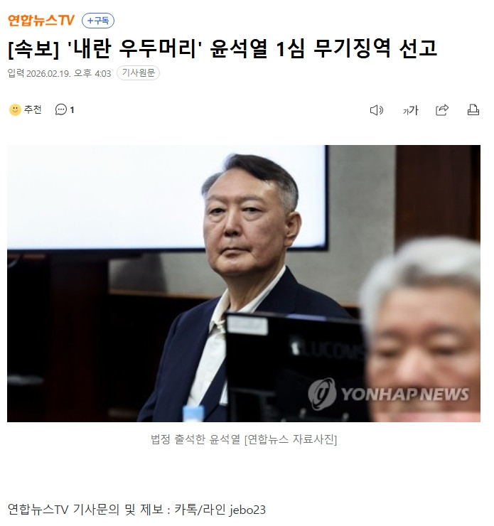 [속보] "내란 우두머리" 윤석열 1심 무기징역 선고