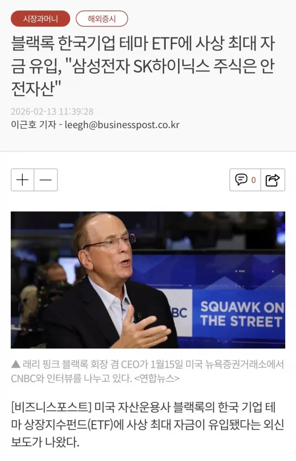 블랙록, "삼성전자 SK하닉은 안전자산"